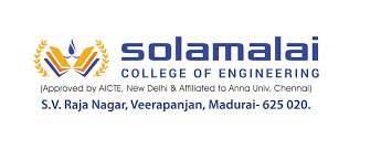 Solamalai College of Engineering is affiliated with Anna University, Chennai, and approved by the All India Council for Technical Education (AICTE), New Delhi. The college offers seven undergraduate programs and four postgraduate programs. It achieved a 3.5-star rating in IIC 4.0 for the year 2021-2022 and was recognized in the “Promising” category under “Colleges/Institutes (Private/Self-financed)(Technical)” in the Atal Ranking of Institutions on Innovations Achievement (ARIIA) 2021.